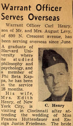 • Born Carl Henry Levy, Cincinnati, Ohio, May 7, 1913