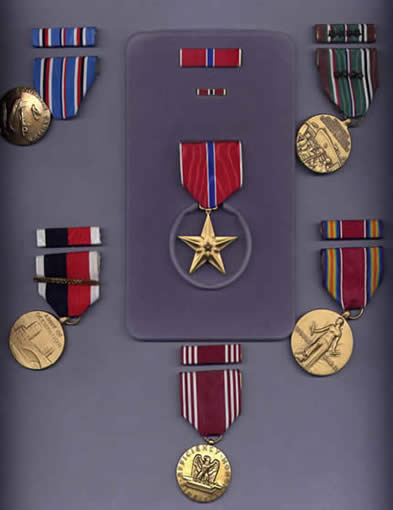 Carl Henry's medals: Bronze Star medal American Campaign Medal European-African-Middle Eastern Campaign Medal WW II Victory Medal Army of Occupation Medal with Germany Clasp Honorable Service Lapel Button WW II |