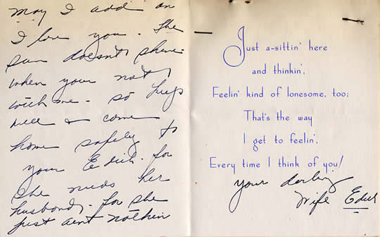 (Edith did not save her letters, contrary to Carl's request, when he sent them back to her.... but we do have some of her memoirs, here.)